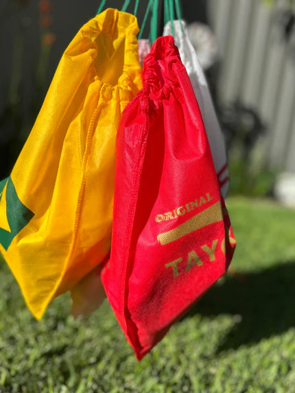 From compostable satchels (used for shipping) to reusable fabric shoe bags, TAYGRAs are packaged with intention.